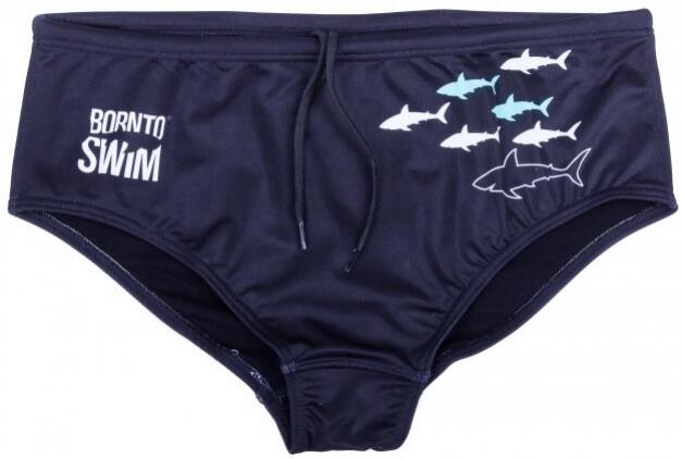 A BornToSwim Sharks Brief fürdőruha kiváló minőségű, klórálló anyagból készült, amely 53% poliészterből és 47% PBT-ből áll.